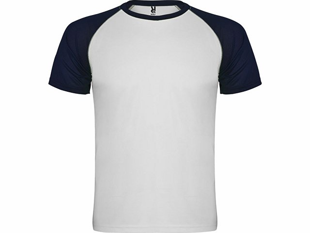 Спортивная футболка с контрастным рукавом реглан. Круглый вырез горловины с контрастной тесьмой. Технологическое дышащее полотно.