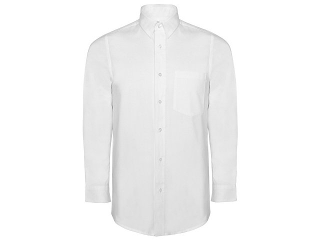 Мужская рубашка с длинным рукавом, накладной карман слева. Планка на пуговицах. Отложной воротник на стойке. Манжета регулируется по ширине с помощью 2-х пуговиц. Кокетка на спинке.