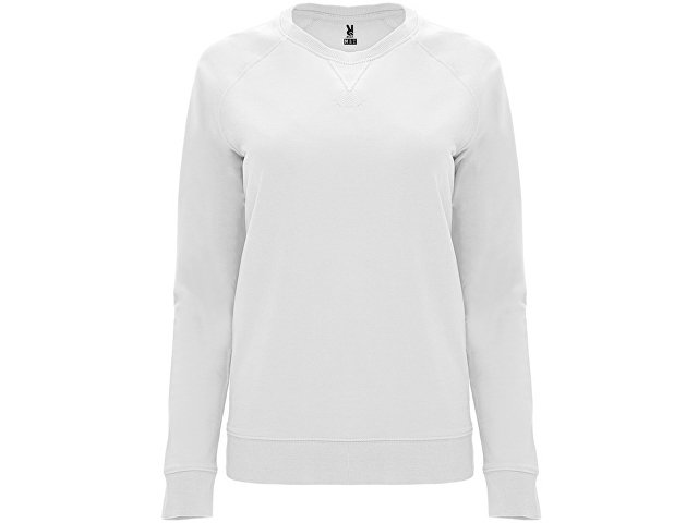 Свитшот с рукавом реглан из хлопкового футера без начеса. Манжеты по рукавами низу изделия из риба 2х1. Впереди треугольная деталь с декоративной отстрочкой .Круглый вырез горловины дополнительно усилен тесьмой.