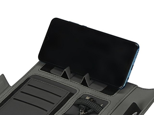 Органайзер «Powernote» — стильный бизнес-подарок, который в полной мере воплощает идею многофункциональности. С его помощью можно заряжать гаджеты как беспроводным способом, так и через кабель, эргономично хранить целый ряд предметов — от ручек и проводов до кредитных карт — и даже делать записи. Элегантность внешнего вида дополняется приятной текстурой обложки из мягкого полиэстера и высоким качеством внутренней отделки с элементами soft-touch покрытия. Практичный и технологичный аксессуар, который в состоянии заменить сразу несколько вещей.