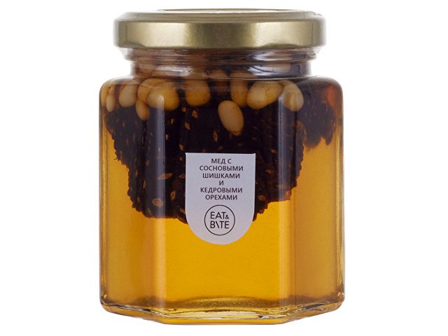 Натуральный мёд, в сочетании с хрустящими кедровыми орехами и молодыми сосновыми шишками — это не просто лакомство, а настоящий природный эликсир. Медовый десерт не только вкусный, но и полезный, идеально подойдет для чаепития, поэтому подобный подарок можно также дополнить чаем.