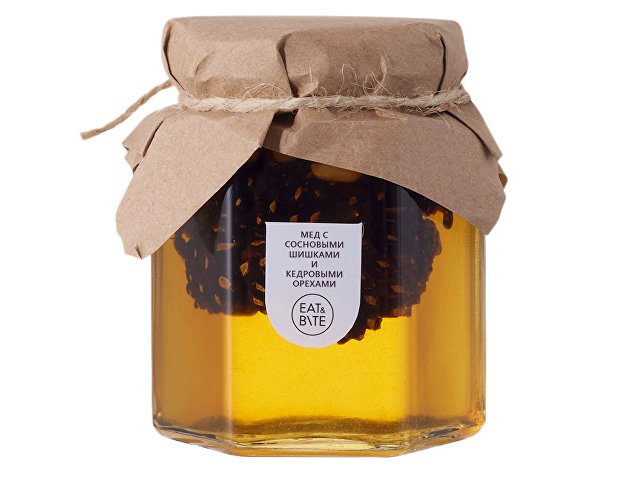 мед натуральный, сосновая шишка, ядро кедрового ореха