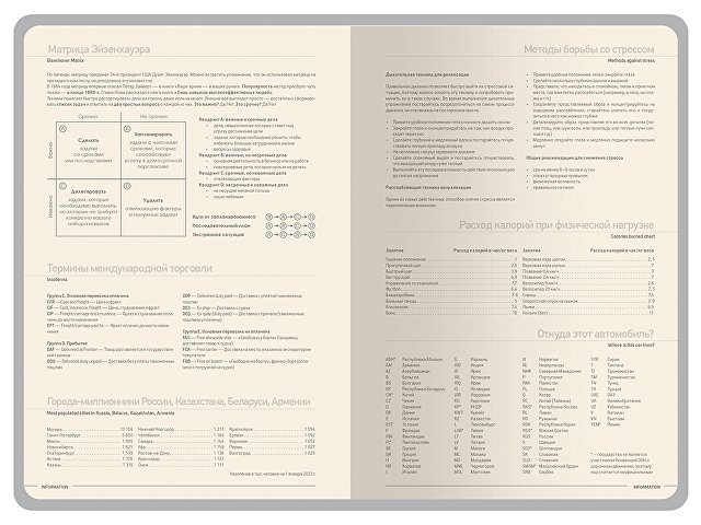 Элегантный датированный ежедневник "Megapolis Color" от Bruno Visconti идеально подходит для организации рабочего дня и ведения важных записей. Обложка из искусственной кожи с приятным на ощупь покрытием Soft Touch и обрез в тон создают гармоничный образ. Внутри – блок из бежевой бумаги плотностью 70 г/кв.м с разделами для планирования, календарем на 2026-2027 год и полезной справочной информацией. Для удобства навигации предусмотрена закладка-ляссе шириной 7 мм в цвет обложки.
